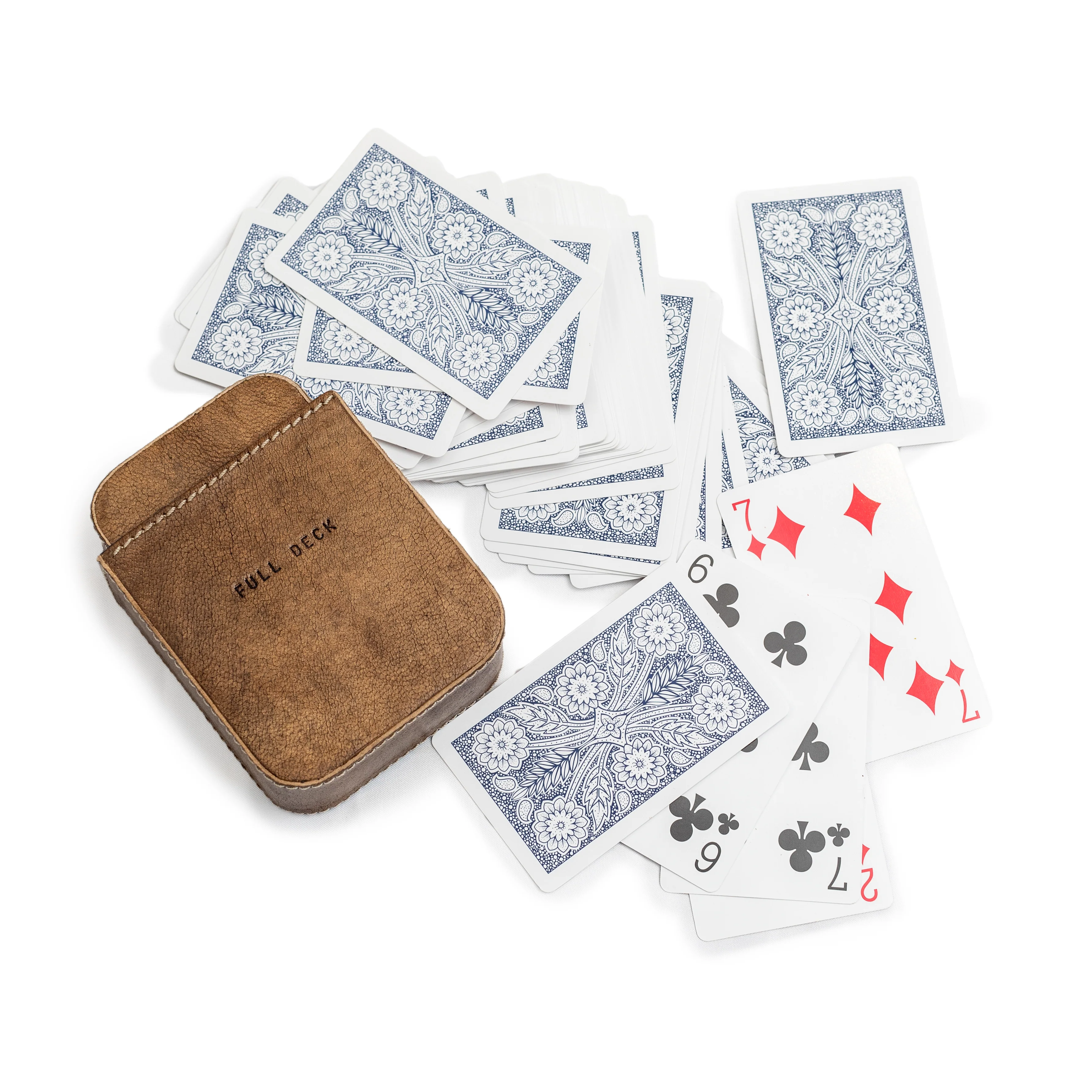 Carry your cards in style with this sleek and sophisticated Leather Card Case featuring a full deck of playing cards and the quote "Full Deck". Made from high-quality leather and durable materials, this card case protects your cards while also adding a touch of personality to your game nights.