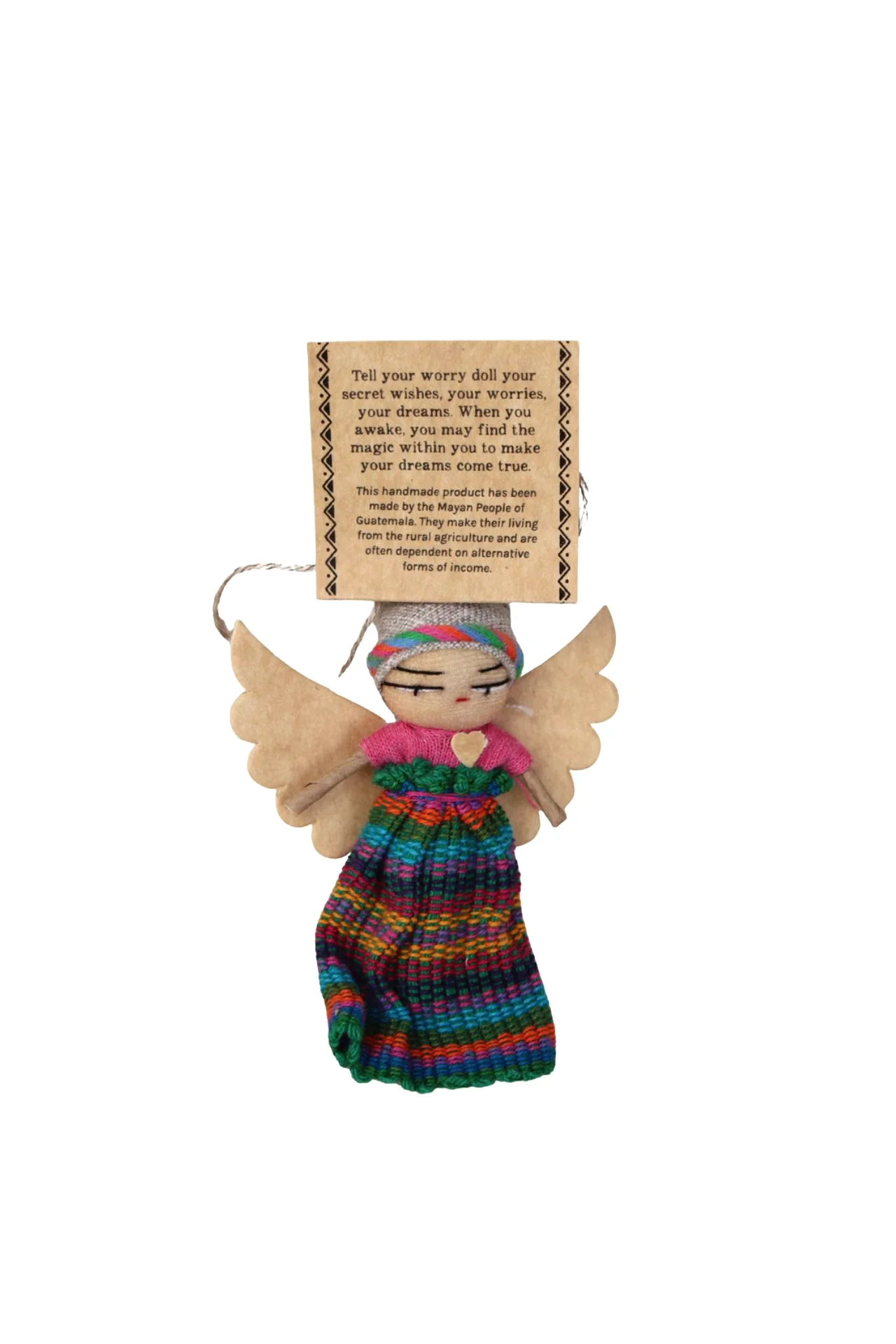 "Tell your worry doll your secret wishes, your worries, your dreams. When you awake, you may find the magic within you to make your dreams come true."